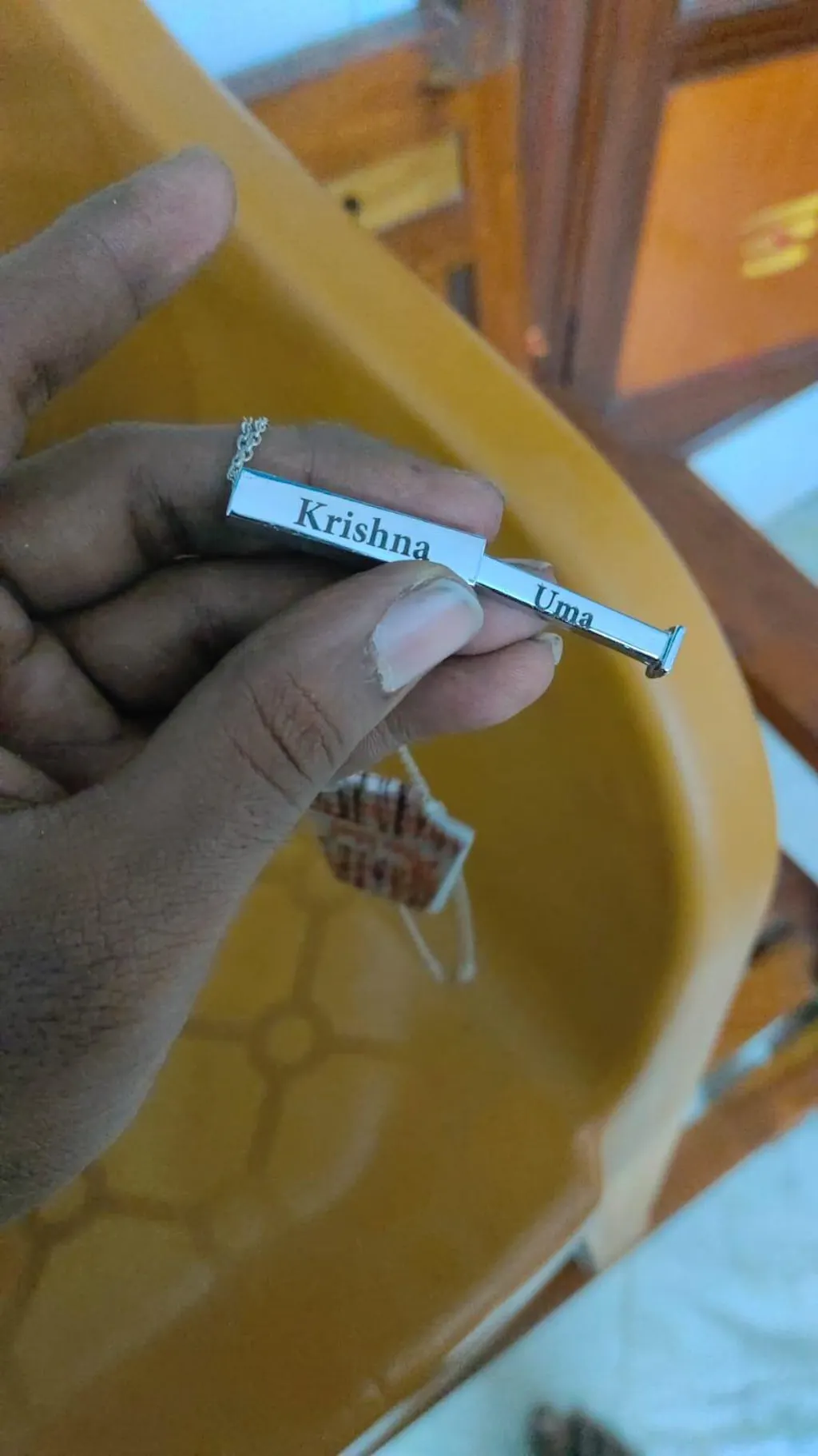- If the chain is pulled, the inside pendant will be locked with the outside pendant