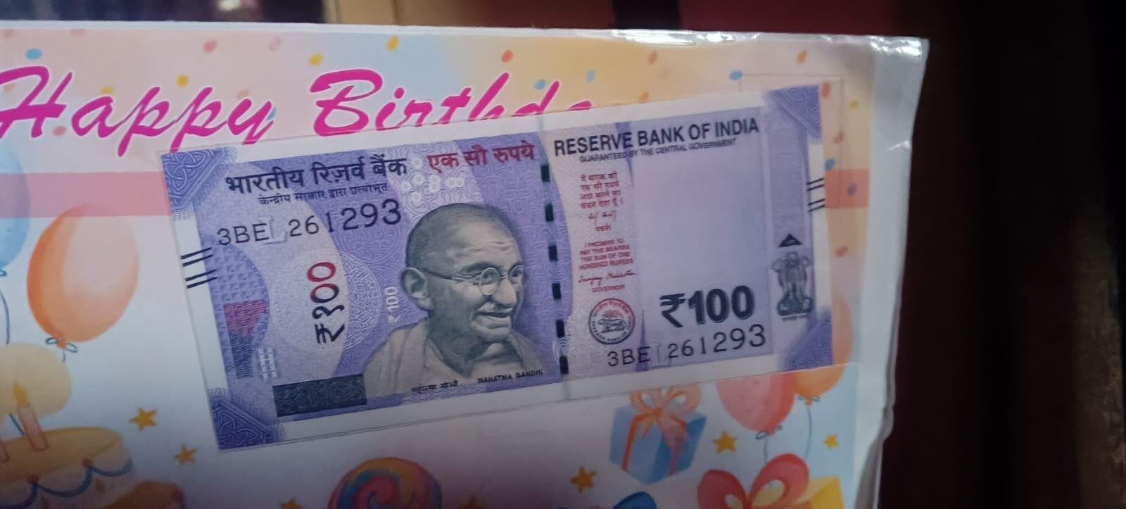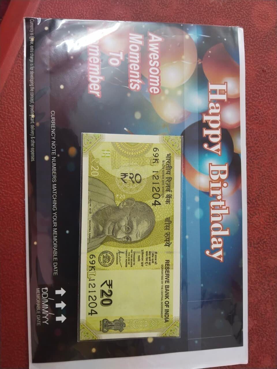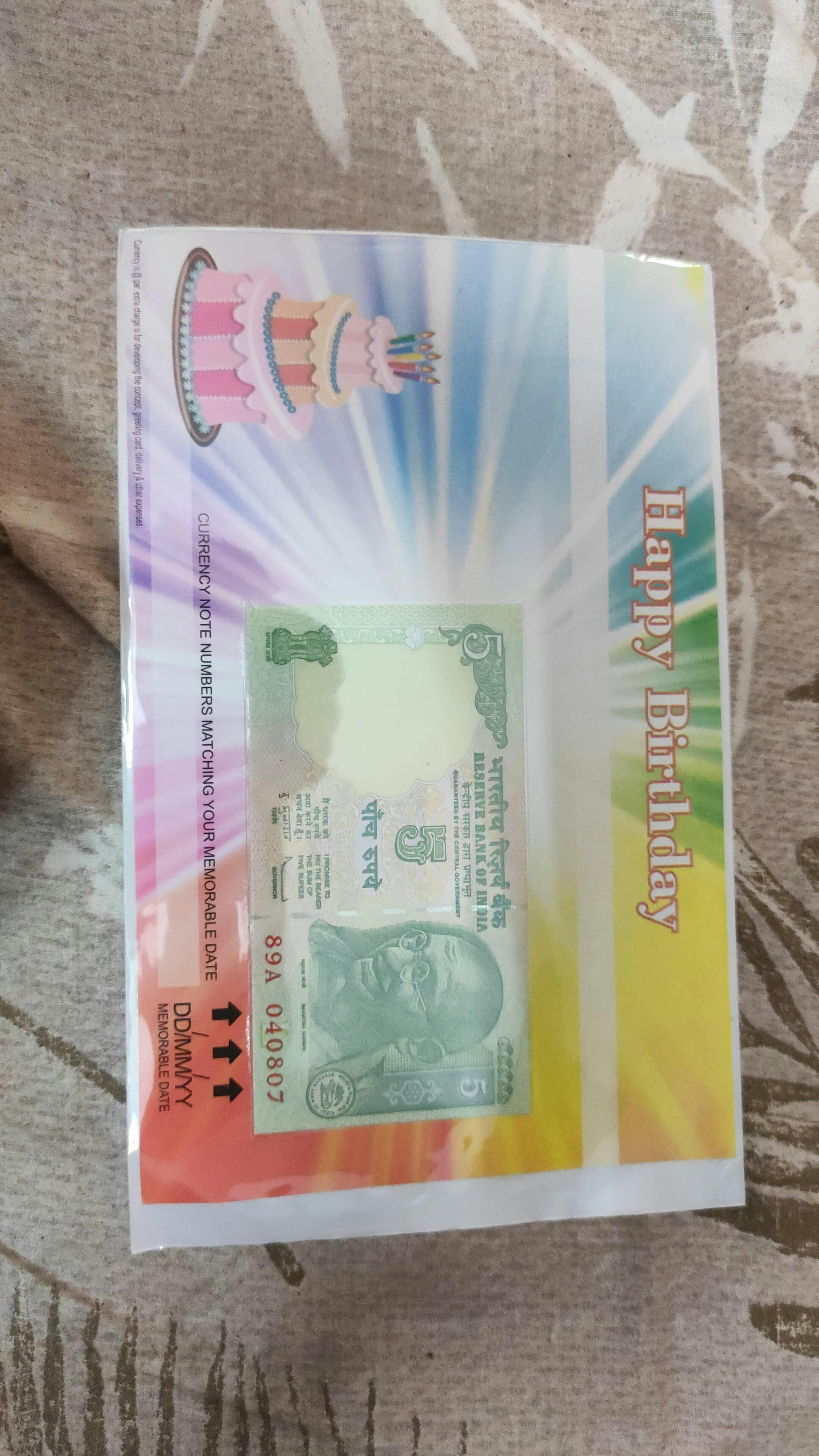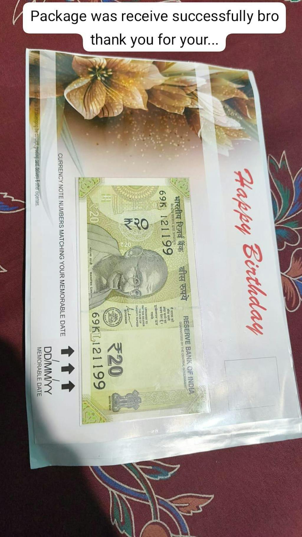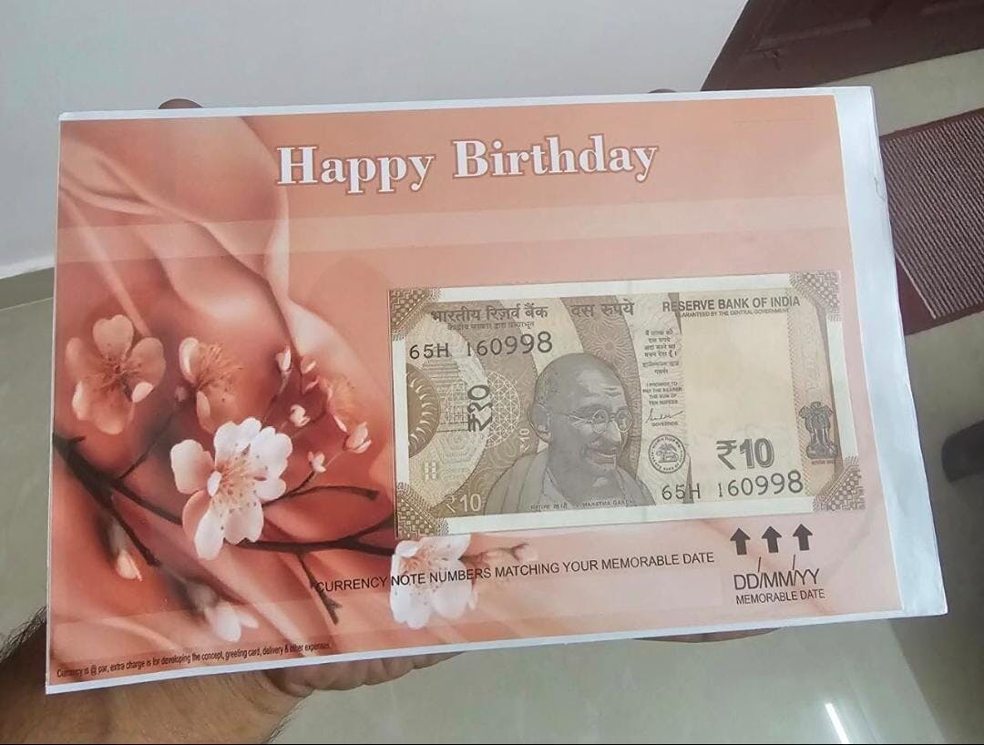 - We provide your beloved's birthdate in a currency note (DD-MM-YY format) along with a birthday card, beautifully packed.