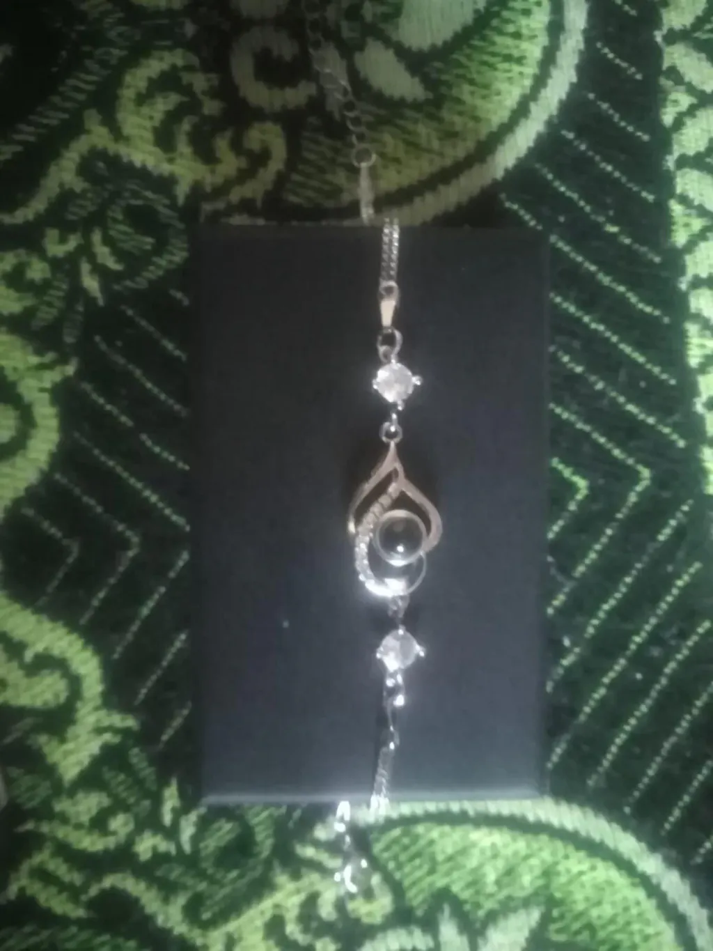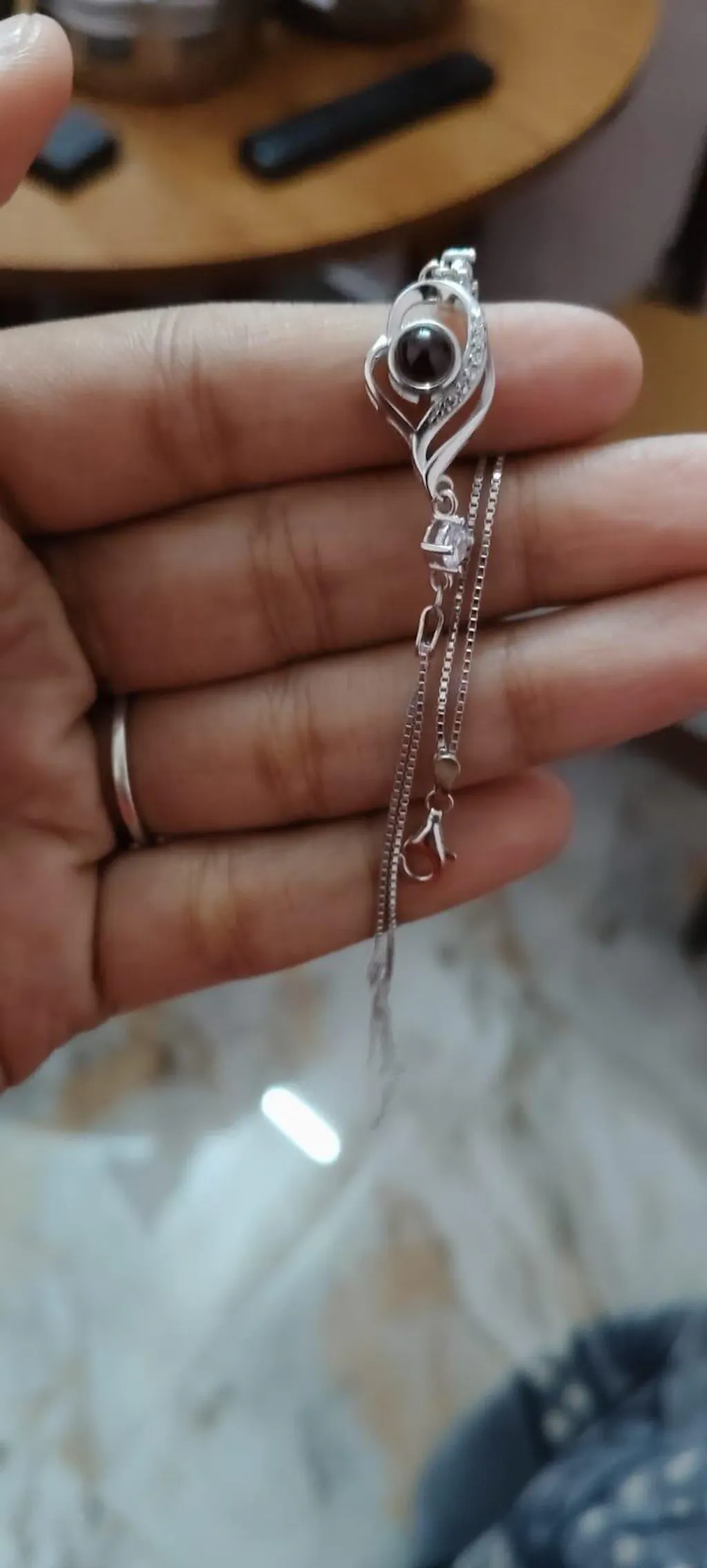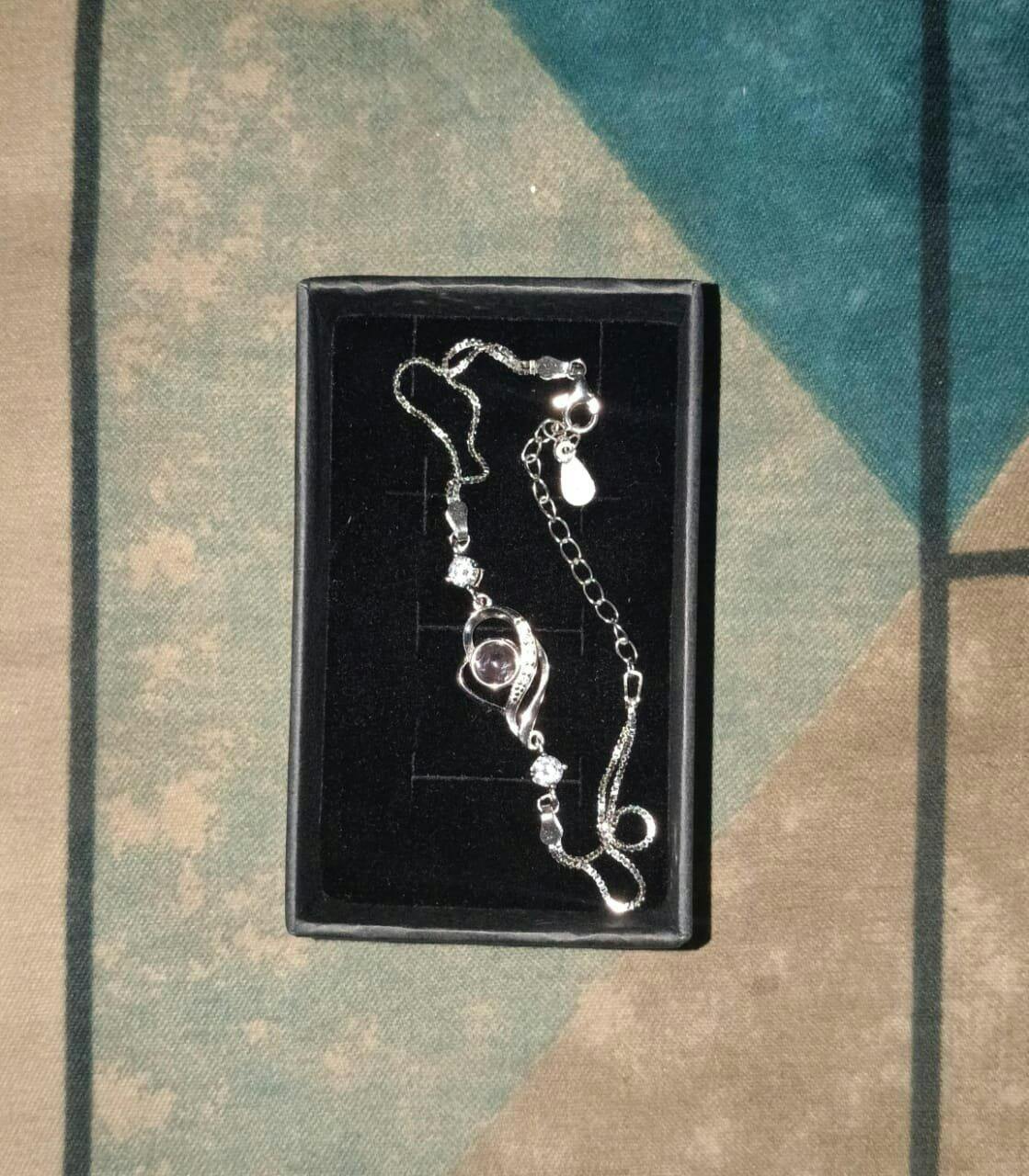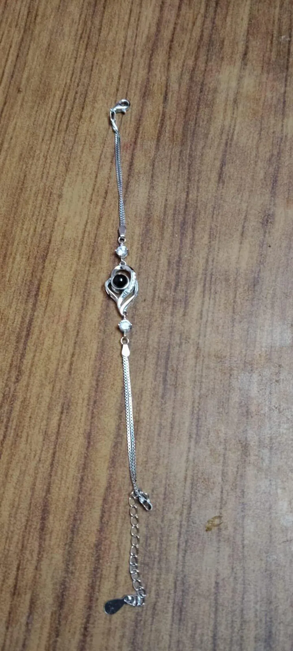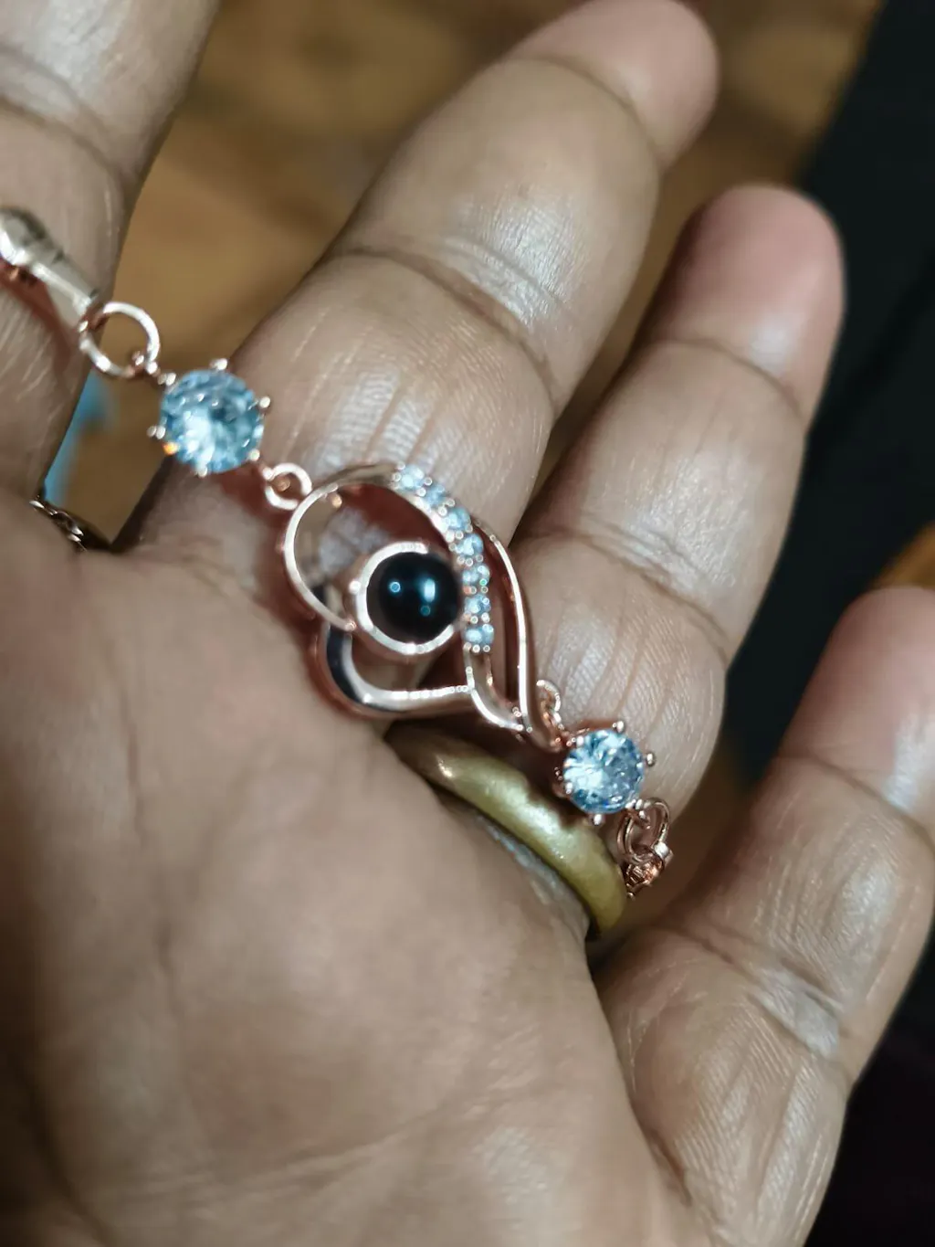 - The bracelet includes a transparent lens that allows you to view the photo of your choosing within the pendant. Additionally, when illuminated, it can project your photo onto a wall.