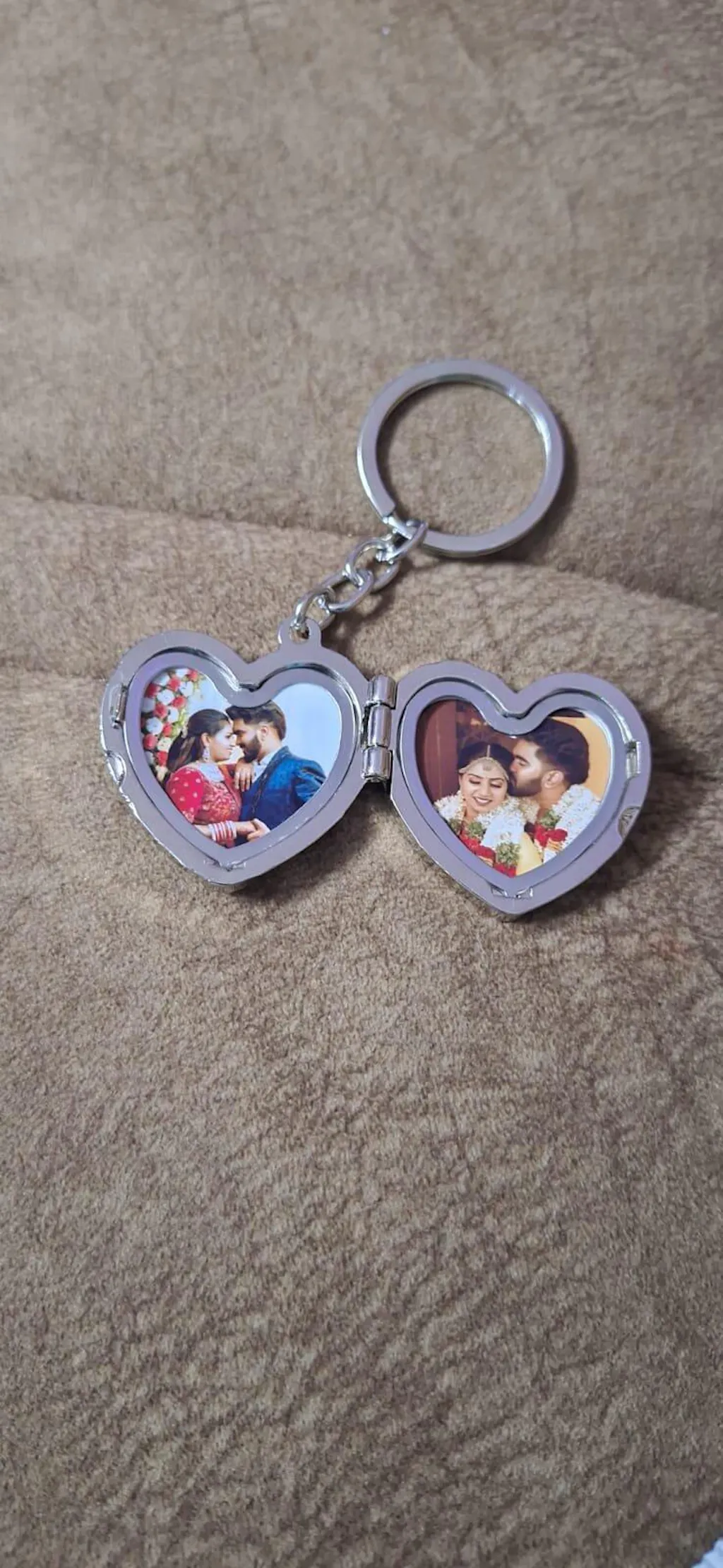 Heart Shape Keychain that can be customized with up to 2 photos.