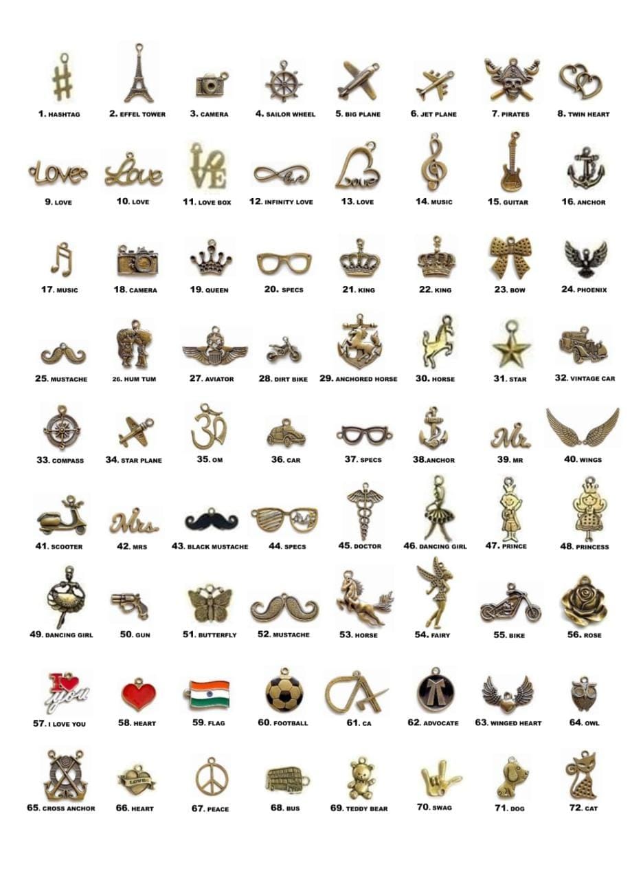 Choose the charm from the chart (72 charm symbols) for the wallet