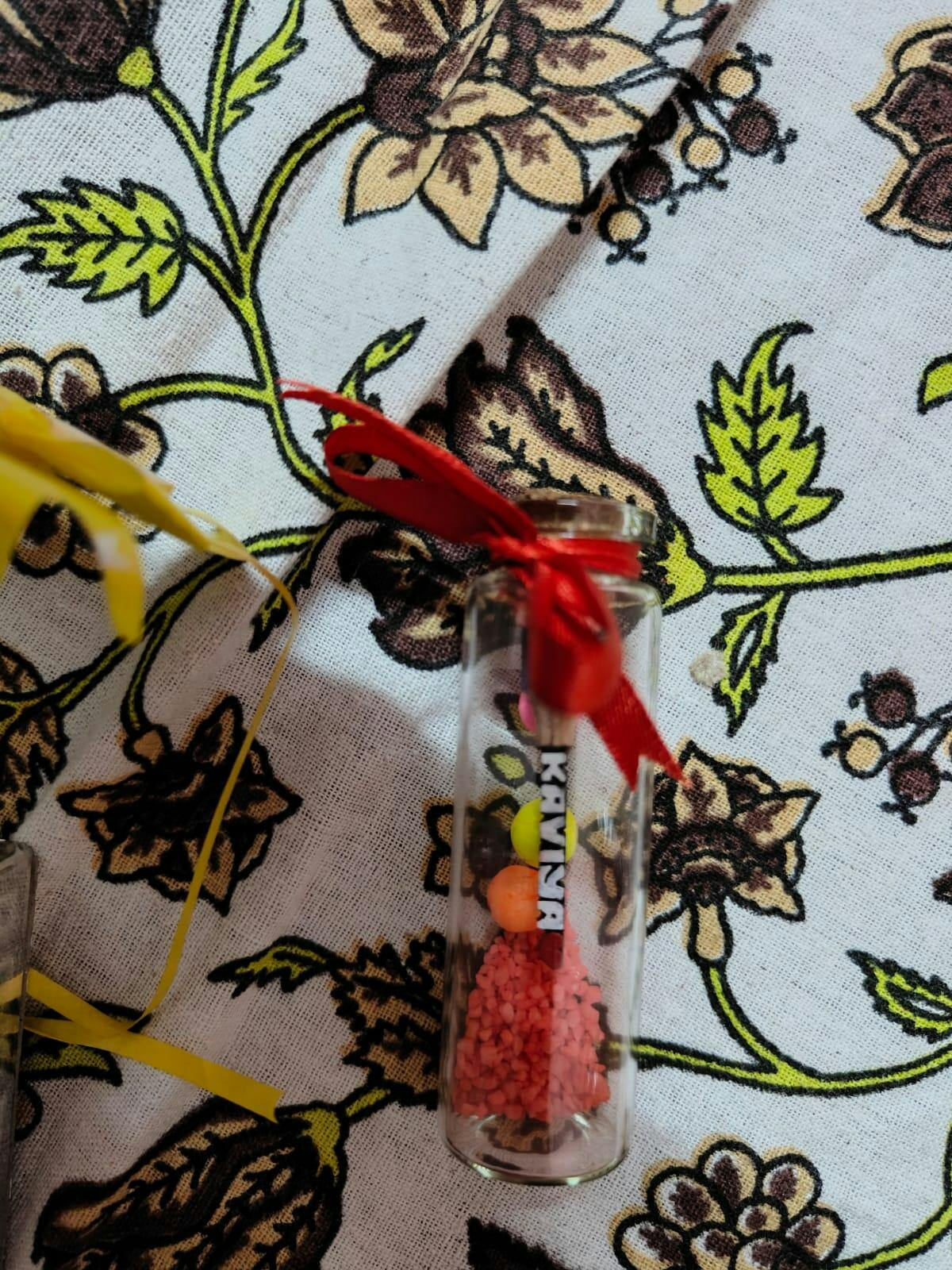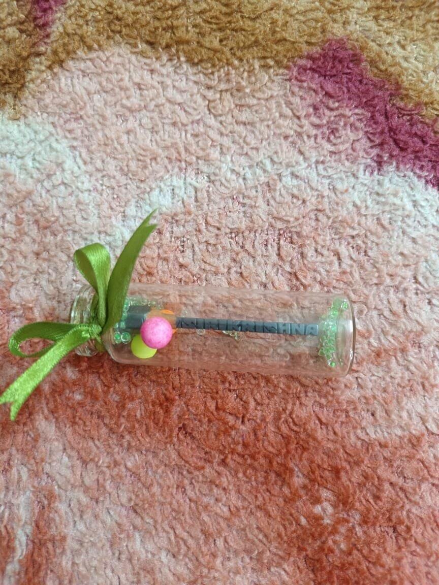 The pencil micro art comes in a preserved cute little bottle with colorful beeds inside it and the bottle is placed in a gift box