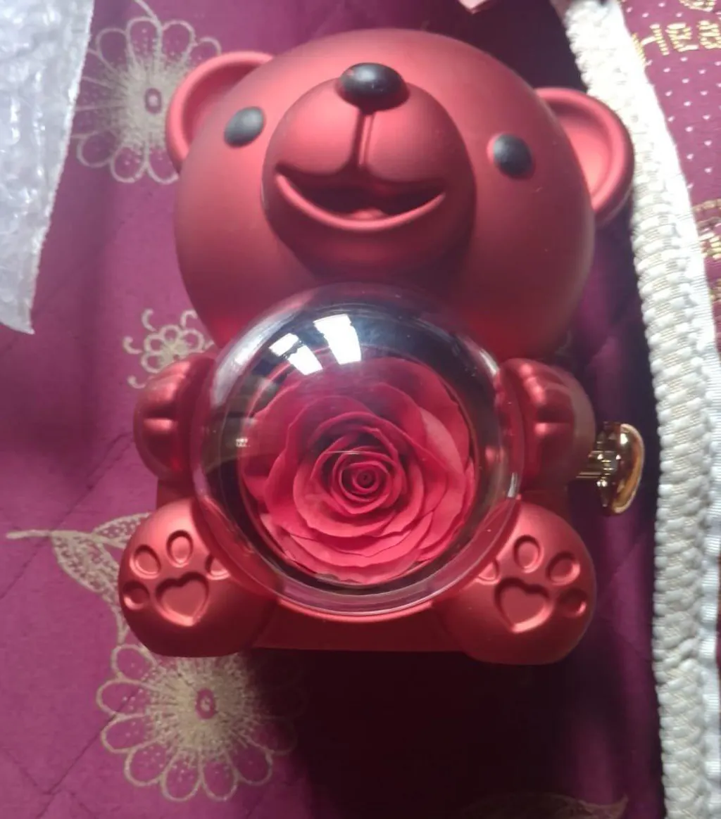 Discover the perfect blend of charm and elegance with our handcrafted rose bear, beautifully presented in a luxurious jewelry box. The ultimate gift for Valentine's Day, anniversaries, weddings, or any special occasion.